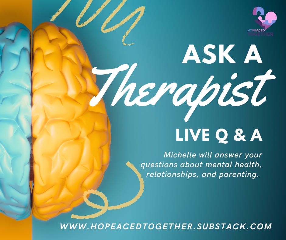 Join me live here on Substack for Ask a Therapist on March 10th at 1:00 pm CT. I hope to see you there!